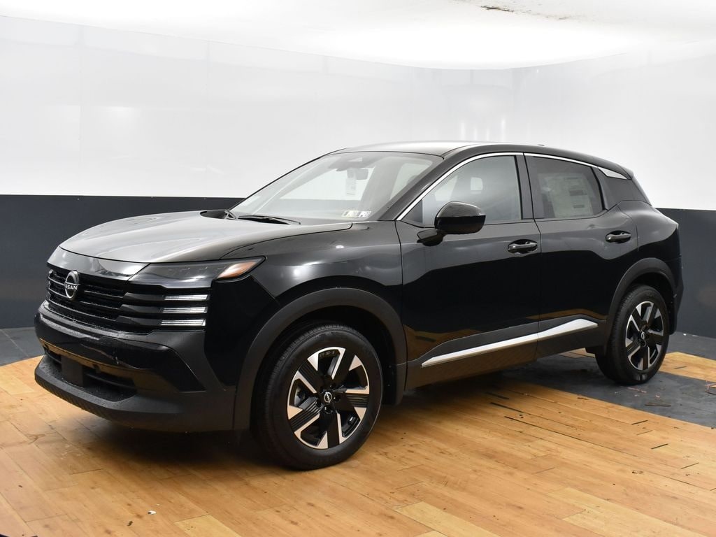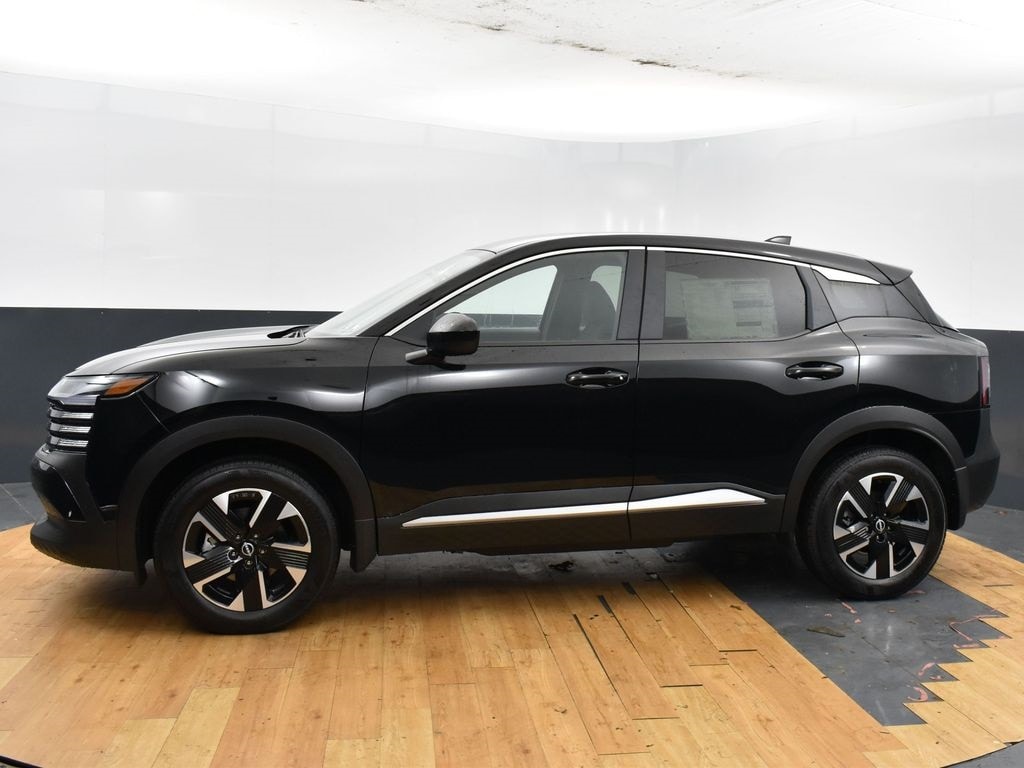 Super Black 2025 Nissan Kicks SV AWD CVT with Xtronic 2.0L DOHC 17" Alloy Wheels, 4 Speakers, 4-Wheel Disc Brakes, ABS brakes, Air Conditioning, Alloy wheels, AM/FM radio: Sirius, Auto High-beam Headlights, Blind Spot Warning, Brake assist, Bumpers: body-color, Cargo Blocks, Carpeted Floor Mats, Charging Package, Cloth Seat Trim, Door Pocket Light, Driver door bin, Driver vanity mirror, Dual front impact airbags, Dual front side impact airbags, Electronic Stability Control, Exterior Ground Lighting w/Logo, Four wheel independent suspension, Frameless Auto-Dimming Mirror w/HomeLink, Front anti-roll bar, Front Bucket Seats, Front Center Armrest, Front reading lights, Fully automatic headlights, Heated door mirrors, Illuminated Cargo Scuff Plate, Illuminated entry, Illuminated Kickplates, Illumination Package, Interior Ambient Lighting, Interior Electronics Package, Knee airbag, Low tire pressure warning, Occupant sensing airbag, Outside temperature display, Overhead airbag, Panic alarm, Passenger door bin, Passenger vanity mirror, Power door mirrors, Power steering, Power windows, Radio data system, Radio: AM/FM Audio System, Rear anti-roll bar, Rear Parking Sensors, Rear reading lights, Rear side impact airbag, Rear window defroster, Rear window wiper, Remote keyless entry, Security system, Speed control, Speed-sensing steering, Splash Guards, Split folding rear seat, Spoiler, Sport steering wheel, Steering wheel mounted audio controls, Tachometer, Telescoping steering wheel, Tilt steering wheel, Traction control, Trip computer, USB Charging Cable Set - Nissan, USB-C Power Delivery, Variably intermittent wipers, Wireless Apple CarPlay/Wireless Android Auto.