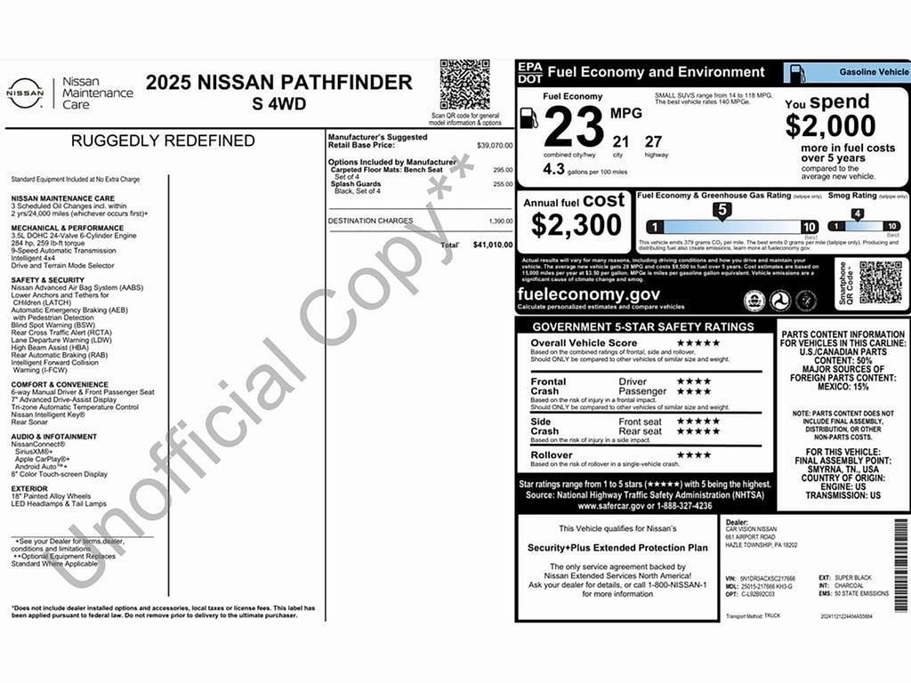 Super Black 2025 Nissan Pathfinder S 4WD 4WD 9-Speed Automatic 3.5L V6 DOHC