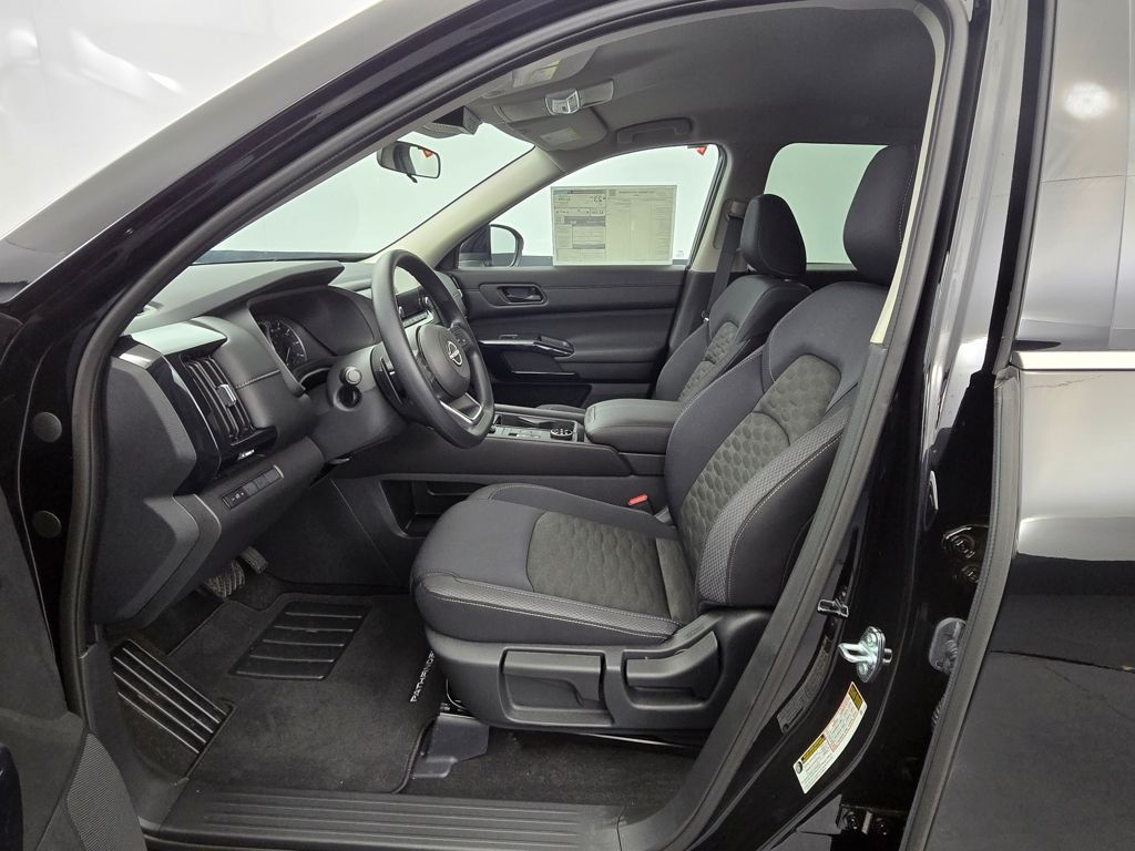Super Black 2025 Nissan Pathfinder S 4WD 4WD 9-Speed Automatic 3.5L V6 DOHC ABS brakes, Alloy wheels, Electronic Stability Control, Front dual zone A/C, Illuminated entry, Low tire pressure warning, Remote keyless entry, Traction control.