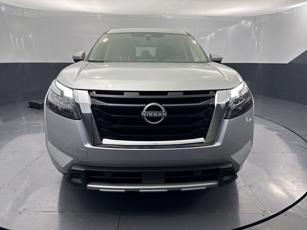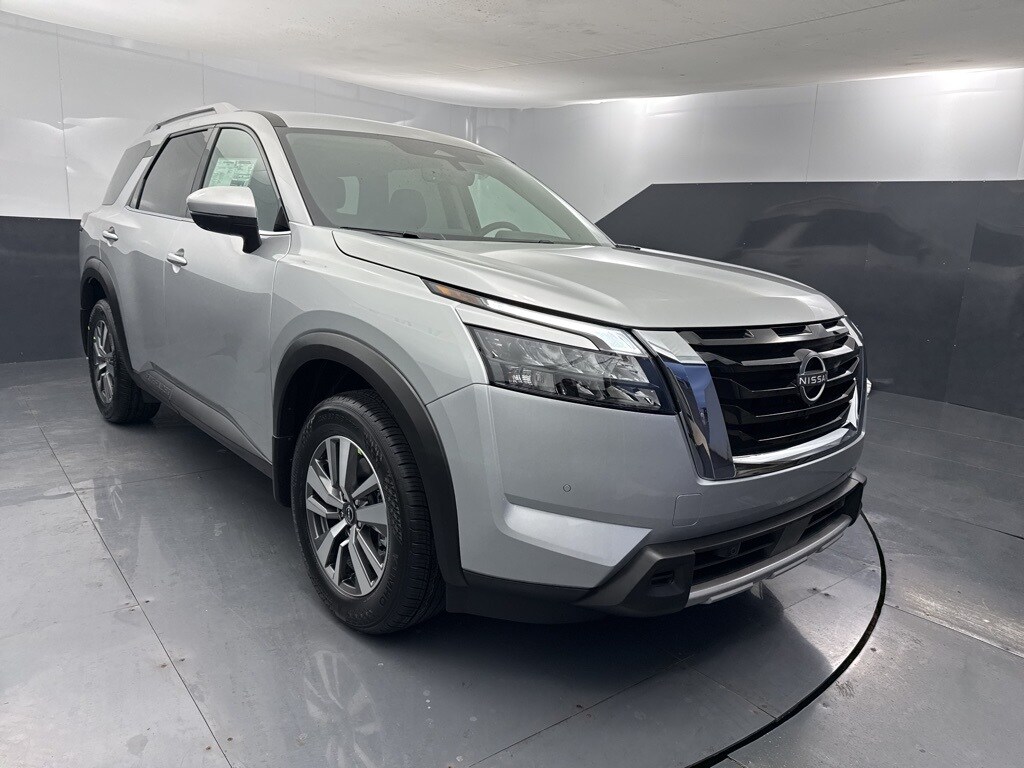 Brilliant Silver Metallic 2025 Nissan Pathfinder SL 4WD 9-Speed Automatic 3.5L V6 DOHC 3rd row seats: bench, 4-Wheel Disc Brakes, 6 Speakers, ABS brakes, Air Conditioning, Alloy wheels, AM/FM radio: SiriusXM, Auto High-beam Headlights, Auto-dimming Rear-View mirror, Automatic temperature control, Bench Seat Carpeted Floor Mats (set of 4), Brake assist, Bumpers: body-color, Delay-off headlights, Driver door bin, Driver vanity mirror, Dual front impact airbags, Dual front side impact airbags, Electronic Stability Control, Emergency communication system, Exterior Parking Camera Rear, Four wheel independent suspension, Front anti-roll bar, Front Bucket Seats, Front Center Armrest, Front dual zone A/C, Front reading lights, Fully automatic headlights, Garage door transmitter: HomeLink, Heated door mirrors, Heated Front Bucket Seats, Heated front seats, Heated steering wheel, Illuminated entry, Knee airbag, Leather steering wheel, Leather-Appointed Seating Surfaces, Low tire pressure warning, Navigation system: NissanConnect with Navigation and Services, NissanConnect featuring Apple CarPlay and Android Auto, NissanConnect with Navigation and Services, Occupant sensing airbag, Outside temperature display, Overhead airbag, Overhead console, Panic alarm, Passenger door bin, Passenger vanity mirror, Power door mirrors, Power driver seat, Power Liftgate, Power passenger seat, Power steering, Power windows, Radio data system, Radio: AM/FM Audio System, Rear air conditioning, Rear anti-roll bar, Rear reading lights, Rear seat center armrest, Rear side impact airbag, Rear window defroster, Rear window wiper, Reclining 3rd row seat, Remote keyless entry, Security system, Speed control, Speed-sensing steering, Split folding rear seat, Spoiler, Steering wheel mounted audio controls, Tachometer, Telescoping steering wheel, Tilt steering wheel, Traction control, Trip computer, Turn signal indicator mirrors, Variably intermittent wipers, Wheels: 18" x 8J Machined Alloy.