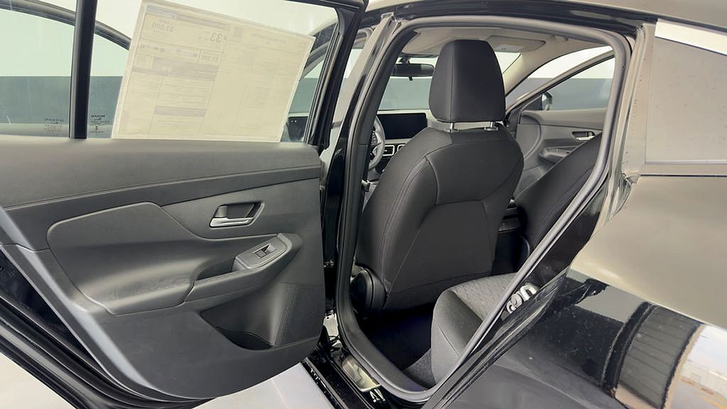 4 Speakers, ABS brakes, Air Conditioning, AM/FM radio, Auto High-beam Headlights, Blind Spot Warning, Body Colored Splash Guards (4-Piece), Brake assist, Bumpers: body-color, Carpeted Floor Mats with Trunk Mat, Cloth Seat Trim, Delay-off headlights, Driver door bin, Driver vanity mirror, Dual front impact airbags, Dual front side impact airbags, Electronic Stability Control, Four wheel independent suspension, Front anti-roll bar, Front Bucket Seats, Front Center Armrest, Front reading lights, Fully automatic headlights, Illuminated entry, Knee airbag, Low tire pressure warning, NissanConnect featuring Apple CarPlay and Android Auto, Occupant sensing airbag, Outside temperature display, Overhead airbag, Overhead console, Panic alarm, Passenger door bin, Passenger vanity mirror, Power door mirrors, Power steering, Power windows, Radio data system, Radio: AM/FM with RDS/MP3/Aux-in, Rear anti-roll bar, Rear Parking Sensors, Rear side impact airbag, Rear window defroster, Remote keyless entry, Speed control, Speed-sensing steering, Split folding rear seat, Steering wheel mounted audio controls, Tachometer, Telescoping steering wheel, Tilt steering wheel, Traction control, Trip computer, Variably intermittent wipers, Wheels: 16" Steel with Full Covers.