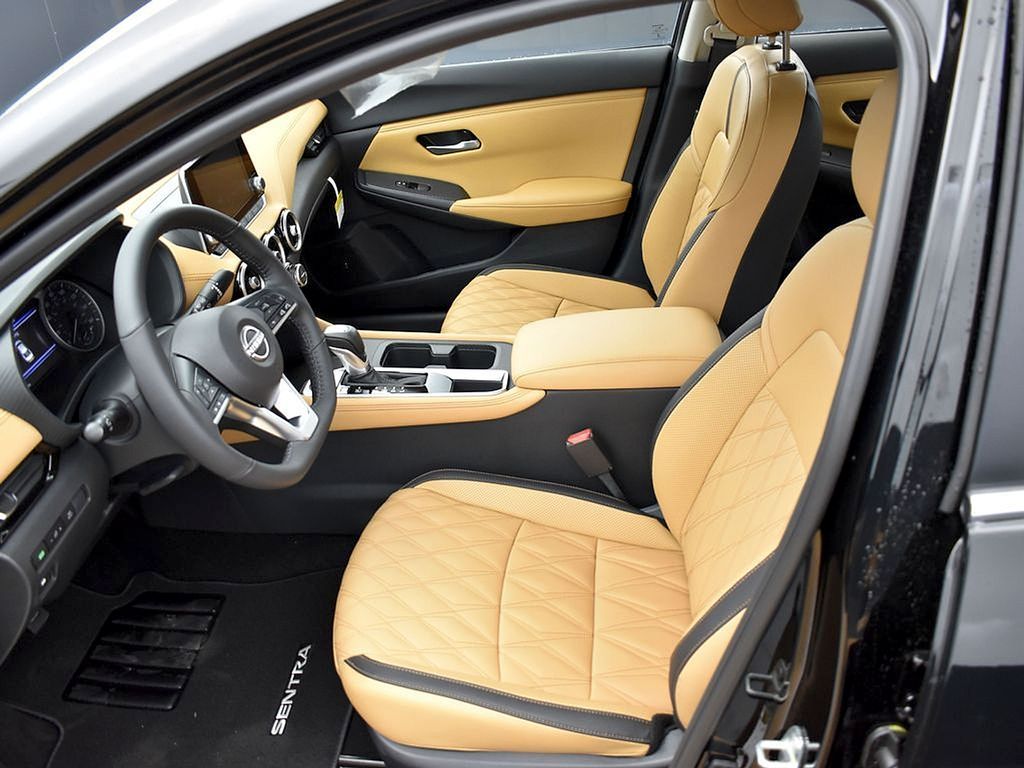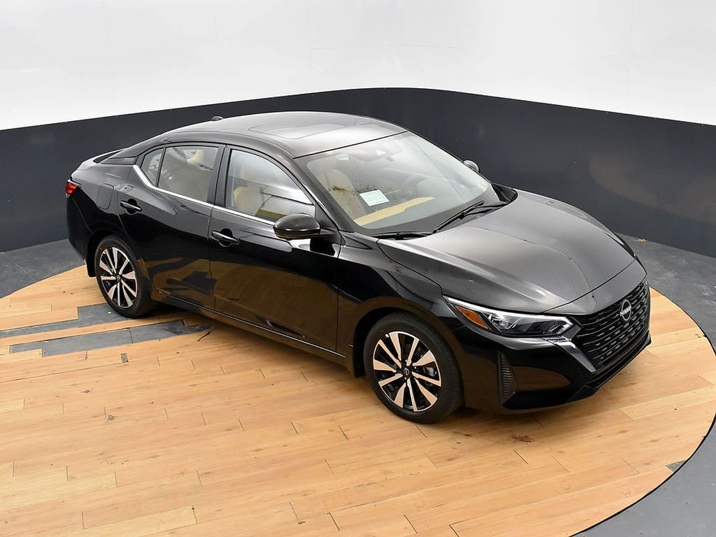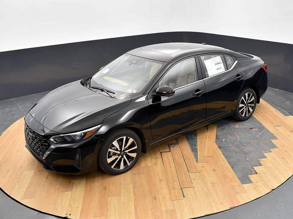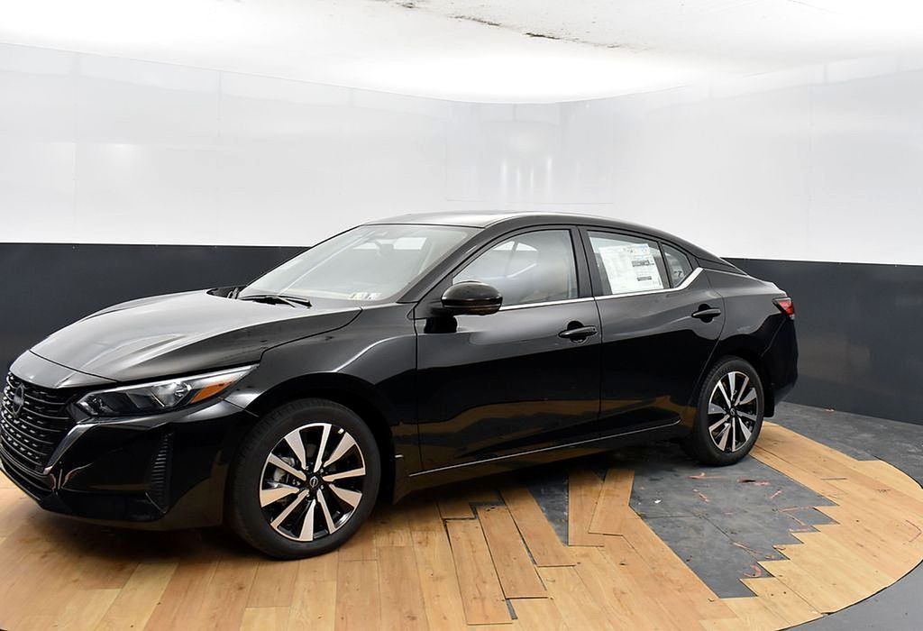 Super Black 2025 Nissan Sentra SV FWD CVT with Xtronic 2.0L I4 DOHC 16" Alloy Wheels, 17" Alloy Wheels, 4-Wheel Disc Brakes, 6-Way Power Driver's Seat, 8 Speakers, ABS brakes, Air Conditioning, All-Weather Package, Alloy wheels, AM/FM radio: SiriusXM, Auto High-beam Headlights, Blind Spot Warning, Body Colored Splash Guards (4-Piece), Brake assist, Bumpers: body-color, Clear Rear Bumper Protector, Delay-off headlights, Door Sill Plates, Driver door bin, Driver vanity mirror, Dual front impact airbags, Dual front side impact airbags, Dual Zone Auto Climate Control, Electronic Stability Control, Four wheel independent suspension, Front anti-roll bar, Front Bucket Seats, Front Center Armrest, Front reading lights, Fully automatic headlights, Heated Exterior Mirrors, Heated Front Seats, Illuminated entry, Intelligent Around View Monitor (I-AVM), Knee airbag, Leather Shift Knob, Leather-Wrapped Heated Steering Wheel, Low tire pressure warning, NissanConnect featuring Apple CarPlay and Android Auto, Occupant sensing airbag, Outside temperature display, Overhead airbag, Overhead console, Panic alarm, Passenger door bin, Passenger vanity mirror, Power door mirrors, Power steering, Power windows, Quilted Leather Seat Trim, Radio data system, Rear anti-roll bar, Rear Parking Sensors, Rear side impact airbag, Rear window defroster, Remote Engine Start, Remote keyless entry, Security system, Speed control, Speed-sensing steering, Split folding rear seat, Steering wheel mounted audio controls, SV Premium Package, Tachometer, Telescoping steering wheel, Tilt steering wheel, Traction control, Trip computer, Upgraded Cloth Seat Trim, Variably intermittent wipers.