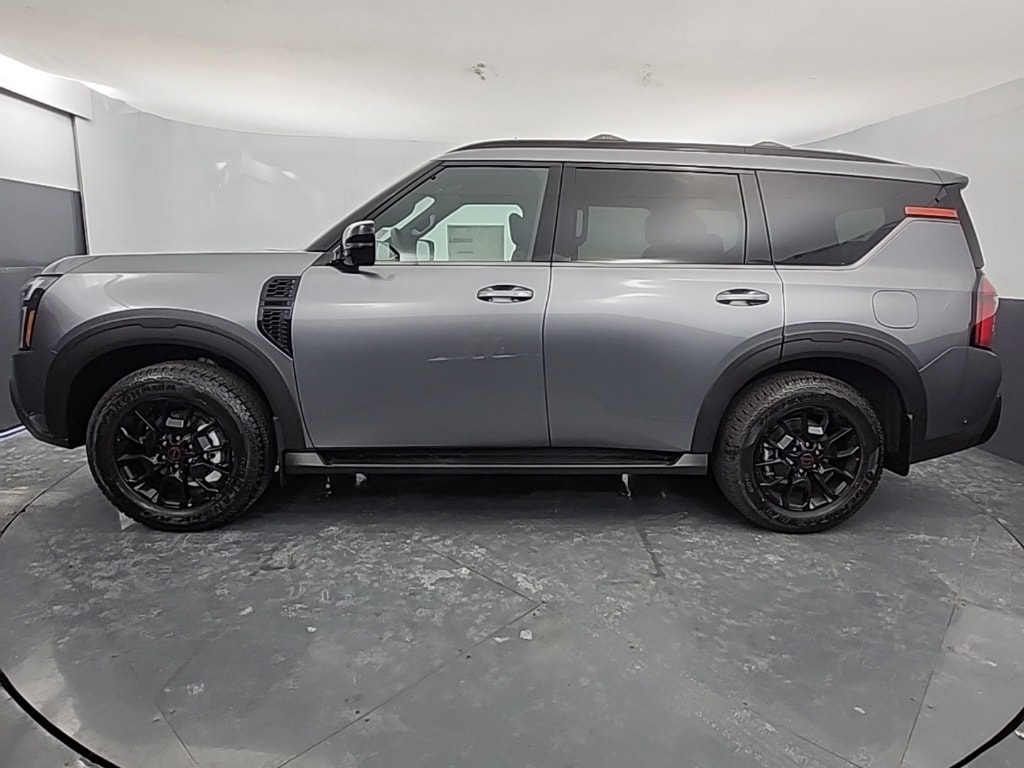 Gun Metallic 2026 Nissan Armada PRO-4X 4WD 9-Speed Automatic 3.5L DOHC 12 Speakers, 2nd Row Center Console with Two Cupholders, 2nd Row Outboard Captain's Chairs with Armrests, 3rd row seats: split-bench, 4-Wheel Disc Brakes, ABS brakes, Adaptive suspension, Air Conditioning, Alloy wheels, AM/FM radio: SiriusXM w/360L, Anti-whiplash front head restraints, Apple CarPlay/Android Auto, Auto High-beam Headlights, Auto tilt-away steering wheel, Auto-dimming door mirrors, Auto-dimming Rear-View mirror, Auto-leveling suspension, Automatic temperature control, Biometric Cooling, Brake assist, Bumpers: body-color, Captain's Chair Seat Package, Climate Controlled Heated and Ventilated Front Seats, Compass, Cross Bars, Delay-off headlights, Driver door bin, Driver vanity mirror, Dual front impact airbags, Dual front side impact airbags, Electronic Stability Control, Emergency communication system: NissanConnect Services, EZ Flex Second Row Seating System with One Touch Release, Four wheel independent suspension, Front anti-roll bar, Front Bucket Seats, Front Center Armrest, Front dual zone A/C, Front fog lights, Front reading lights, Fully automatic headlights, Garage door transmitter: myQ Connected Garage, Genuine wood dashboard insert, Hands-Free Power Liftgate, Heated 2nd Row Seats, Heated door mirrors, Heated Front Bucket Seats, Heated front seats, Heated steering wheel, HVAC memory, Illuminated entry, Illuminated Kick Plates, in-Car Camera, Intelligent Dash Cam, Intelligent Rear View Mirror (I-RVM), Knee airbag, Leather steering wheel, Low tire pressure warning, Memory seat, Navigation system: Google Maps, Occupant sensing airbag, Outside temperature display, Overhead airbag, Overhead console, Panic alarm, Panoramic Moonroof, Passenger door bin, Passenger vanity mirror, Power door mirrors, Power driver seat, Power Liftgate, Power passenger seat, Power steering, Power windows, PRO-4X Carpeted Floor Mats with Captain's Chair, Pro-4x Leather Quilted Insert Seat Trim, PRO-4X Mud Guards, PRO-4X Premium Package with Captain's Chair, Radio: NissanConnect with SiriusXM 360L, Rain sensing wipers, Rear air conditioning, Rear anti-roll bar, Rear Bumper Protector, Rear reading lights, Rear seat center armrest, Rear window defroster, Rear window wiper, Reclining 3rd row seat, Remote keyless entry, Security system, Speed control, Speed-sensing steering, Speed-Sensitive Wipers, Split folding rear seat, Spoiler, Steering wheel memory, Steering wheel mounted audio controls, Tachometer, Telescoping steering wheel, Tilt steering wheel, Traction control, Trip computer, Turn signal indicator mirrors, Variably intermittent wipers, Voltmeter, Wheels: 20" x 8.5J Painted PRO-4X Alloy.
