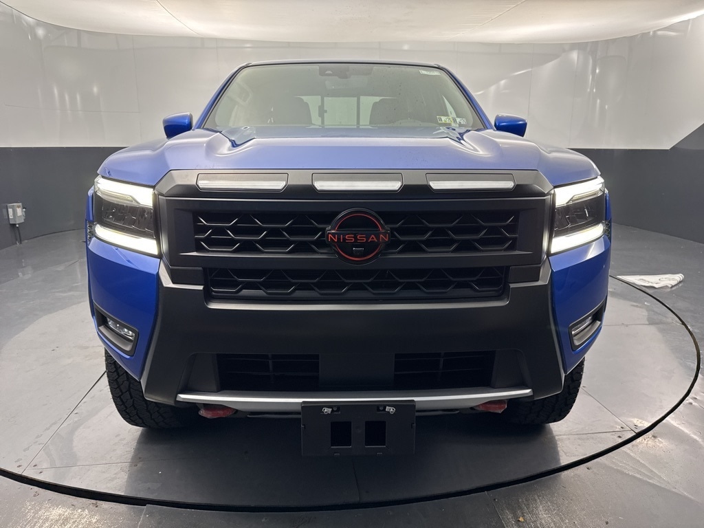 Bluestone Pearl 2026 Nissan Frontier PRO-4X 4WD 9-Speed Automatic with Overdrive 3.8L DI DOHC 24V V6 17" Painted Alloy Wheels, 3.692 Axle Ratio, 4-Wheel Disc Brakes, 6 Speakers, ABS brakes, Air Conditioning, Alloy wheels, AM/FM radio: SiriusXM, Anti-whiplash front head restraints, Auto High-beam Headlights, Automatic temperature control, Blind Spot Warning, Brake assist, Bumpers: body-color, Delay-off headlights, Driver door bin, Driver vanity mirror, Dual front impact airbags, Dual front side impact airbags, Electronic Stability Control, Electronic Tailgate Lock, Emergency communication system, Essentials Kit, Front anti-roll bar, Front Bucket Seats, Front Center Armrest, Front dual zone A/C, Front fog lights, Front reading lights, Front wheel independent suspension, Fully automatic headlights, Grille Accent Lighting, Heated Front Bucket Seats, Heated front seats, Heated steering wheel, Illuminated entry, Knee airbag, Leather Seat Trim, Leather steering wheel, Low tire pressure warning, Mud Flaps, Occupant sensing airbag, Off-Road Style Step Rails, Overhead airbag, Overhead console, Panic alarm, Passenger door bin, Passenger vanity mirror, Power door mirrors, Power driver seat, Power passenger seat, Power steering, Power windows, Premium Paint, PRO Embroidered Premium Cloth Seat Trim, PRO Premium Package, PRO-4X Convenience Package, Radio data system, Radio: SXM/AM/FM/AUX/USB Audio System, Rear anti-roll bar, Rear seat center armrest, Rear side impact airbag, Rear step bumper, Remote keyless entry, Security system, Speed control, Speed-sensing steering, Split folding rear seat, Steering wheel mounted audio controls, Tachometer, Telescoping steering wheel, Tilt steering wheel, Traction control, Trip computer, Variably intermittent wipers, Voltmeter, Wireless Apple CarPlay/Wireless Android Auto.