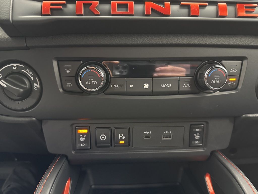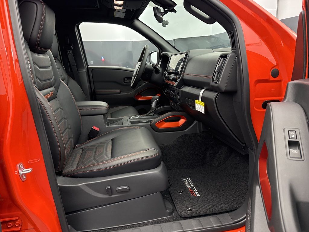 Afterburn Orange 2026 Nissan Frontier PRO-4X 4WD 9-Speed Automatic with Overdrive 3.8L DI DOHC 24V V6 17" Painted Alloy Wheels, 3.692 Axle Ratio, 4-Wheel Disc Brakes, 6 Speakers, ABS brakes, Air Conditioning, Alloy wheels, AM/FM radio: SiriusXM, Anti-whiplash front head restraints, Auto High-beam Headlights, Automatic temperature control, Blind Spot Warning, Brake assist, Bumpers: body-color, Delay-off headlights, Driver door bin, Driver vanity mirror, Dual front impact airbags, Dual front side impact airbags, Electronic Stability Control, Electronic Tailgate Lock, Emergency communication system, Essentials Kit, Front anti-roll bar, Front Bucket Seats, Front Center Armrest, Front dual zone A/C, Front fog lights, Front reading lights, Front wheel independent suspension, Fully automatic headlights, Heated Front Bucket Seats, Heated front seats, Heated steering wheel, Illuminated entry, Knee airbag, Leather Seat Trim, Leather steering wheel, Low tire pressure warning, Mud Flaps, Occupant sensing airbag, Off-Road Style Step Rails, Overhead airbag, Overhead console, Panic alarm, Passenger door bin, Passenger vanity mirror, Power door mirrors, Power driver seat, Power passenger seat, Power steering, Power windows, Premium Paint, PRO Embroidered Premium Cloth Seat Trim, PRO Premium Package, PRO-4X Carpeted Floor Mats, PRO-4X Convenience Package, Radio data system, Radio: SXM/AM/FM/AUX/USB Audio System, Rear anti-roll bar, Rear seat center armrest, Rear side impact airbag, Rear step bumper, Remote keyless entry, Security system, Speed control, Speed-sensing steering, Split folding rear seat, Steering wheel mounted audio controls, Tachometer, Telescoping steering wheel, Tilt steering wheel, Tow Package (T11), Traction control, Trip computer, Variably intermittent wipers, Voltmeter, Wireless Apple CarPlay/Wireless Android Auto.