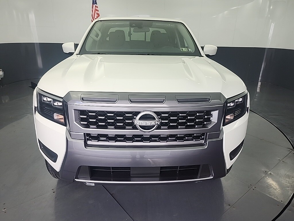 Glacier White 2026 Nissan Frontier SV 4WD 9-Speed Automatic with Overdrive 3.8L DI DOHC 24V V6 17" Alloy Wheels, 3.692 Axle Ratio, 4-Wheel Disc Brakes, 6 Speakers, ABS brakes, Air Conditioning, Alloy wheels, AM/FM radio: SiriusXM, Anti-whiplash front head restraints, Auto High-beam Headlights, Blind Spot Warning, Brake assist, Bumpers: body-color, Carpeted Floor Mats, Delay-off headlights, Driver door bin, Driver vanity mirror, Drop-In Bed Liner & Bumper Step, Dual front impact airbags, Dual front side impact airbags, Electronic Stability Control, Emergency communication system, Front anti-roll bar, Front Bucket Seats, Front Center Armrest, Front reading lights, Front wheel independent suspension, Fully automatic headlights, Illuminated entry, Knee airbag, Low tire pressure warning, Occupant sensing airbag, Overhead airbag, Overhead console, Panic alarm, Passenger door bin, Passenger vanity mirror, Power door mirrors, Power driver seat, Power steering, Power windows, Premium Cloth Seat Trim, Radio data system, Radio: SXM/AM/FM/AUX/USB Audio System, Rear anti-roll bar, Rear seat center armrest, Rear side impact airbag, Rear step bumper, Remote keyless entry, Security system, Speed control, Speed-sensing steering, Splash Guards, Split folding rear seat, Steering wheel mounted audio controls, Tachometer, Telescoping steering wheel, Tilt steering wheel, Tow Package, Tow/Haul Mode Switch, Traction control, Trip computer, Variably intermittent wipers, Voltmeter, Wireless Apple CarPlay/Wireless Android Auto.