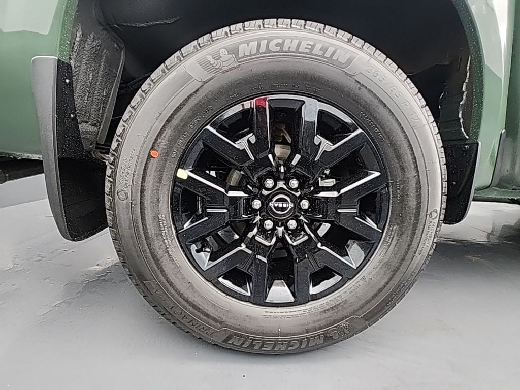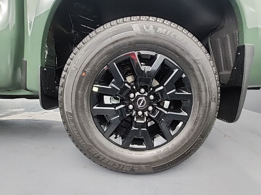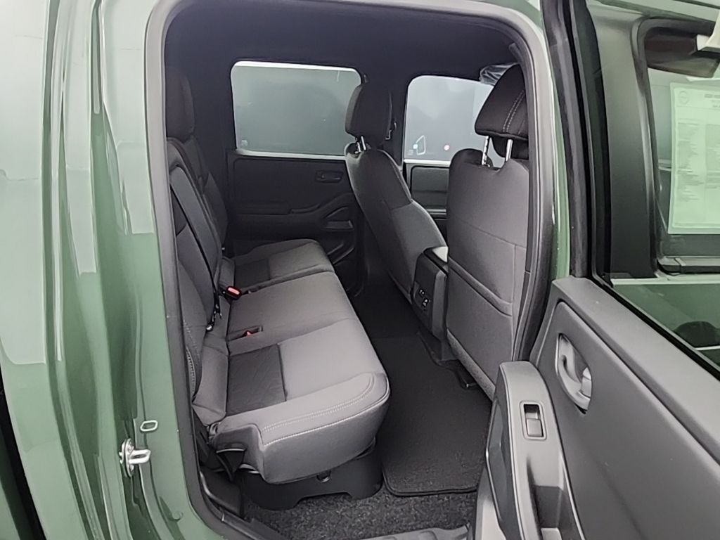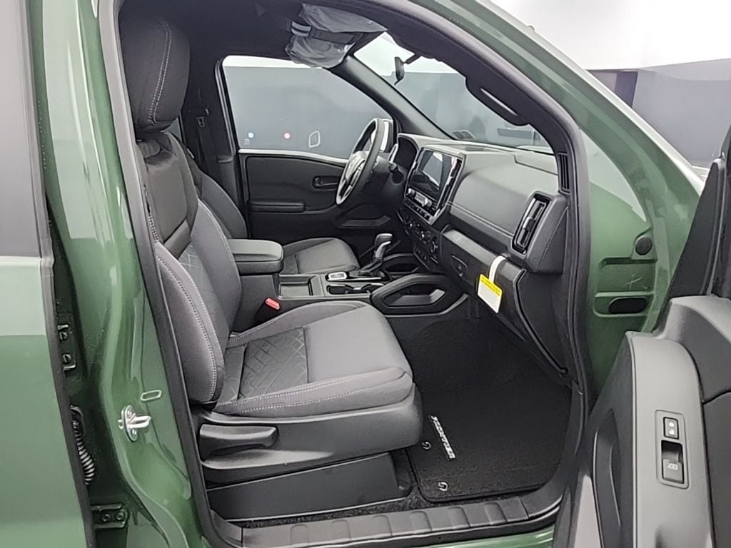 Tactical Green Metallic 2026 Nissan Frontier SV 4WD 9-Speed Automatic with Overdrive 3.8L DI DOHC 24V V6 120V Power Outlet in Bed, 120V Power Outlet in Rear Center Console, 17" Alloy Wheels, 3.692 Axle Ratio, 4-Wheel Disc Brakes, 6 Speakers, ABS brakes, Air Conditioning, Alloy wheels, AM/FM radio: SiriusXM, Anti-whiplash front head restraints, Auto High-beam Headlights, Bed Under-Rail Lighting, Black Tailgate Logo Insert, Blind Spot Warning, Brake assist, Bumpers: body-color, Carpeted Floor Mats, Dark Armor Package, Dark FRONTIER Tailgate Lettering, Dark Grill Surround/Mesh/Inner Fascia, Dark Mirror Caps, Delay-off headlights, Driver door bin, Driver vanity mirror, Dual front impact airbags, Dual front side impact airbags, Electronic Stability Control, Electronic Tailgate Lock, Emergency communication system, Front anti-roll bar, Front Bucket Seats, Front Center Armrest, Front reading lights, Front wheel independent suspension, Fully automatic headlights, Heated Front Seats, Heated Leather Steering Wheel, Heated Outside Mirrors, HVAC - Dual-Zone Front Auto A/C, I-Key w/Request Switches on O/S Handles, Illuminated entry, Knee airbag, Locking Glove Box, Low tire pressure warning, Occupant sensing airbag, Overhead airbag, Overhead console, Panic alarm, Passenger door bin, Passenger vanity mirror, Power door mirrors, Power driver seat, Power steering, Power windows, Premium Cloth Seat Trim, Premium Paint, Radio data system, Radio: SXM/AM/FM/AUX/USB Audio System, Rear anti-roll bar, Rear seat center armrest, Rear side impact airbag, Rear step bumper, Remote Engine Starter, Remote keyless entry, Security system, Speed control, Speed-sensing steering, Splash Guards, Split folding rear seat, Spray-In Bedliner, Steering wheel mounted audio controls, SV Convenience Package, Tachometer, Telescoping steering wheel, Tilt steering wheel, Tow Package (T11), Tow/Haul Mode Switch, Traction control, Trailer Hitch w/Wiring Harness, Trip computer, Utili-Track System, Variably intermittent wipers, Voltmeter, Wheels: 17" Dark, Wireless Apple CarPlay/Wireless Android Auto.