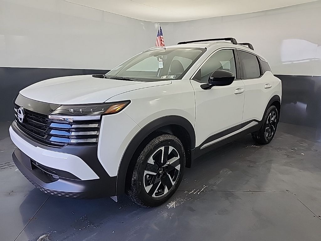 Fresh Powder 2026 Nissan Kicks SV AWD CVT with Xtronic 2.0L DOHC 17" Alloy Wheels, 4 Speakers, 4-Wheel Disc Brakes, ABS brakes, Air Conditioning, Alloy wheels, AM/FM radio, Auto High-beam Headlights, Automatic temperature control, AWD Cargo Mat, Blind Spot Warning, Brake assist, Bumpers: body-color, Cargo Blocks, Carpeted Floor Mats, Charging Package, Cloth Seat Trim, Cold Weather Package, Crossbars, Dash Cam - Dual Camera Drive Recorder, Door Pocket Light, Door Trim Panel Scuff Plates, Driver door bin, Driver vanity mirror, Dual front impact airbags, Dual front side impact airbags, Electronic Stability Control, Emergency communication system, Exterior Ground Lighting w/Logo, Exterior Parking Camera Rear, Four wheel independent suspension, Front anti-roll bar, Front Bucket Seats, Front Center Armrest, Front reading lights, Fully automatic headlights, Heated Front Seats, Heated Mirrors, Illuminated Cargo Scuff Plate, Illuminated Driver & Passenger Sun Visors, Illuminated entry, Illuminated Kickplates, Illumination Package, Interior Ambient Lighting, Interior Electronics Package, Knee airbag, Low tire pressure warning, NissanConnect featuring Apple CarPlay and Android Auto, Occupant sensing airbag, Outside temperature display, Overhead airbag, Panic alarm, Panoramic Headliner Illumination, Panoramic Moonroof, Passenger door bin, Passenger vanity mirror, Power door mirrors, Power steering, Power windows, Radio data system, Radio: AM/FM/SiriusXM Audio System, Rear anti-roll bar, Rear Floor Heater Ducts, Rear reading lights, Rear side impact airbag, Rear window defroster, Rear window wiper, Remote keyless entry, Security system, Speed control, Speed-sensing steering, Splash Guards, Split folding rear seat, Spoiler, Sport steering wheel, Steering wheel mounted audio controls, Sunglass Holder, SV Premium Package, Tachometer, Telescoping steering wheel, Tilt steering wheel, Traction control, Trip computer, USB Charging Cable Set - Nissan, USB-C Power Delivery, Variably intermittent wipers.