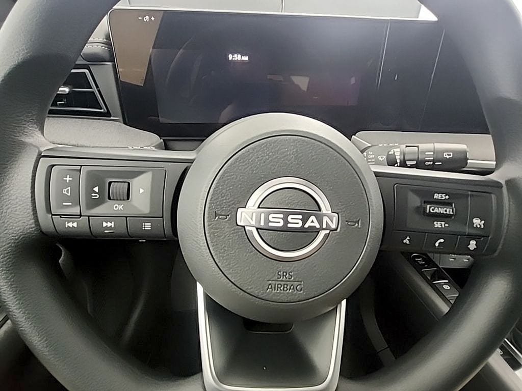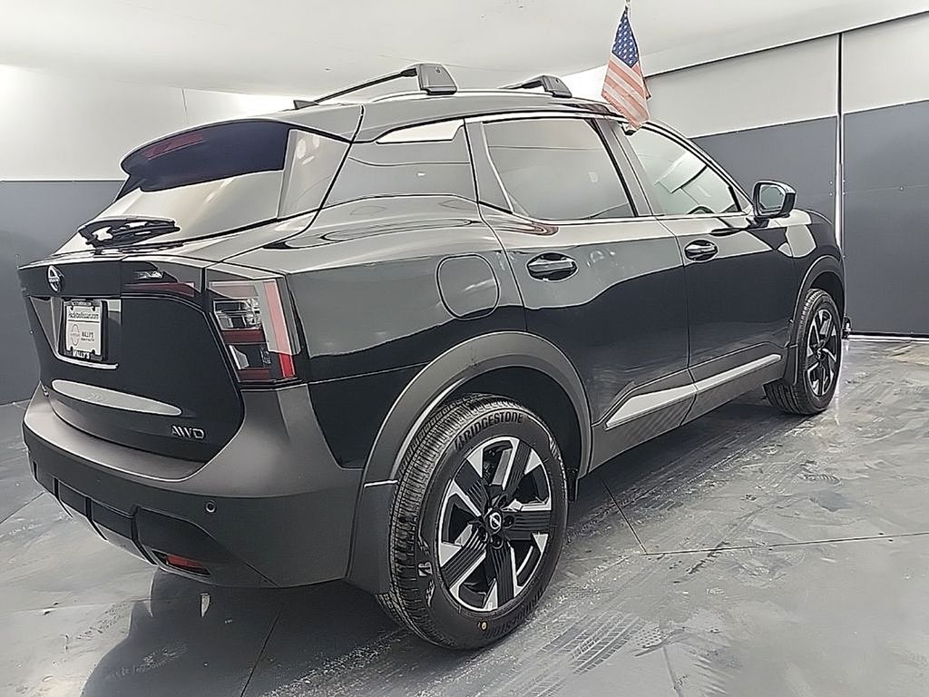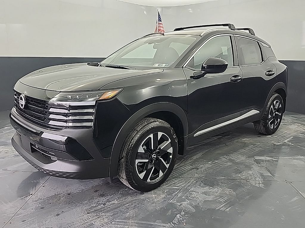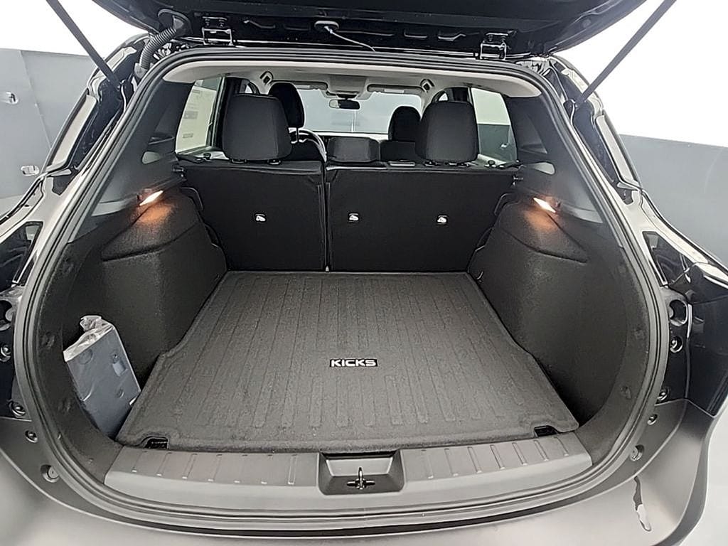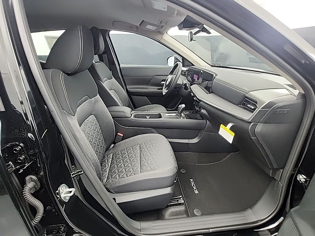 Super Black 2026 Nissan Kicks SV AWD CVT with Xtronic 2.0L DOHC 17" Alloy Wheels, 4 Speakers, 4-Wheel Disc Brakes, ABS brakes, Air Conditioning, Alloy wheels, AM/FM radio, Auto High-beam Headlights, Automatic temperature control, AWD Cargo Mat, Blind Spot Warning, Brake assist, Bumpers: body-color, Carpeted Floor Mats, Charging Package, Cloth Seat Trim, Cold Weather Package, Crossbars, Driver door bin, Driver vanity mirror, Dual front impact airbags, Dual front side impact airbags, Electronic Stability Control, Emergency communication system, Exterior Parking Camera Rear, Four wheel independent suspension, Front anti-roll bar, Front Bucket Seats, Front Center Armrest, Front reading lights, Fully automatic headlights, Heated Front Seats, Heated Mirrors, Illuminated entry, Knee airbag, Low tire pressure warning, NissanConnect featuring Apple CarPlay and Android Auto, Occupant sensing airbag, Outside temperature display, Overhead airbag, Panic alarm, Passenger door bin, Passenger vanity mirror, Power door mirrors, Power steering, Power windows, Radio data system, Radio: AM/FM/SiriusXM Audio System, Rear anti-roll bar, Rear Floor Heater Ducts, Rear reading lights, Rear side impact airbag, Rear window defroster, Rear window wiper, Remote keyless entry, Security system, Speed control, Speed-sensing steering, Splash Guards, Split folding rear seat, Spoiler, Sport steering wheel, Steering wheel mounted audio controls, Tachometer, Telescoping steering wheel, Tilt steering wheel, Traction control, Trip computer, USB Charging Cable Set - Nissan, USB-C Power Delivery, Variably intermittent wipers.
