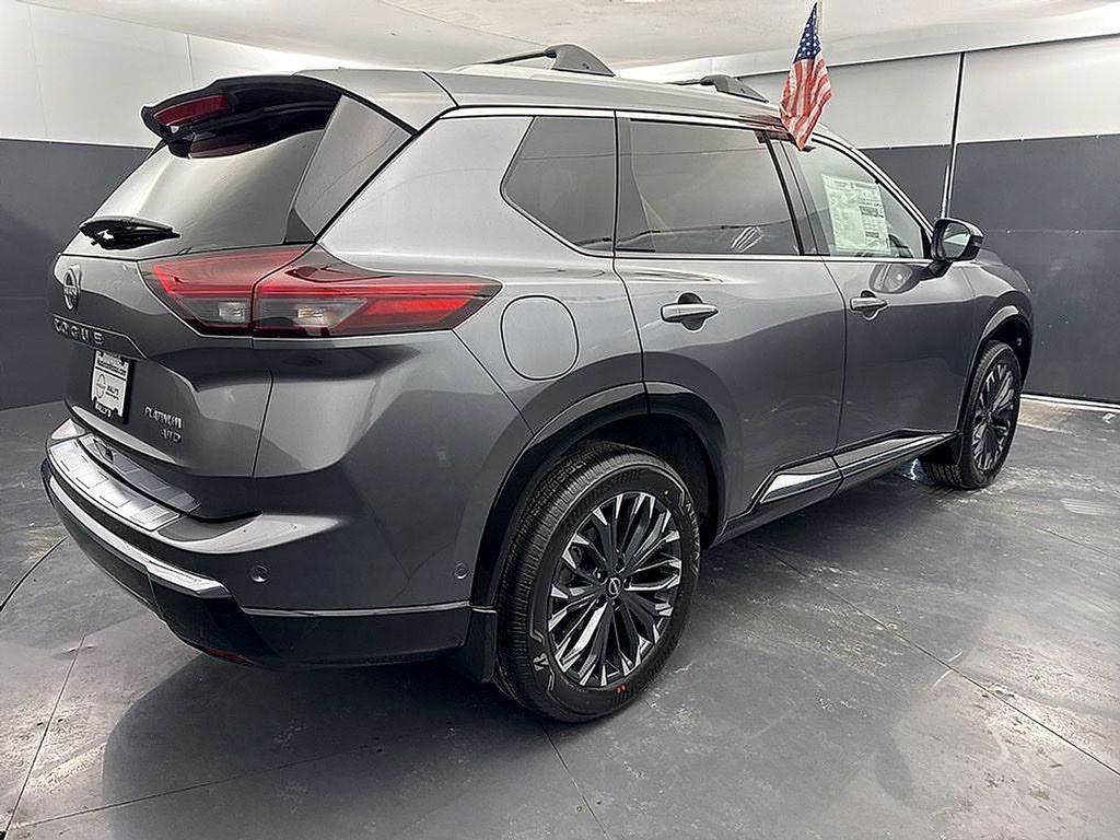 Gun Metallic 2026 Nissan Rogue Platinum AWD CVT with Xtronic 1.5L DOHC 10 Speakers, 4-Wheel Disc Brakes, ABS brakes, Air Conditioning, Alloy wheels, AM/FM radio: SiriusXM w/360L, Auto High-beam Headlights, Auto-dimming Rear-View mirror, Automatic temperature control, Black Splash Guards (set of 4), Bose Premium Audio System, Brake assist, Bumpers: body-color, Chrome Rear Bumper Protector, Delay-off headlights, Driver door bin, Driver vanity mirror, Dual front impact airbags, Dual front side impact airbags, Electronic Stability Control, Emergency communication system: NissanConnect Services, First Aid Kit, Floor Mats with 2-Piece Cargo Area Protector, Four wheel independent suspension, Front anti-roll bar, Front Bucket Seats, Front Center Armrest, Front dual zone A/C, Front reading lights, Fully automatic headlights, Garage door transmitter: myQ Connected Garage, Head-Up Display, Heads-Up Display, Heated door mirrors, Heated Front Bucket Seats, Heated front seats, Heated Rear Seats, Heated steering wheel, Illuminated entry, Knee airbag, Low tire pressure warning, Memory seat, Motion-Activated Power Liftgate, Navigation system: Google Maps, Occupant sensing airbag, Outside temperature display, Overhead airbag, Overhead console, Panic alarm, Passenger door bin, Passenger vanity mirror, Platinum Premium Package, Power door mirrors, Power driver seat, Power Liftgate, Power moonroof, Power passenger seat, Power steering, Power windows, Quilted Semi-Aniline Leather-Appointed Seat Trim, Radio data system, Radio: AM/FM NissanConnect with Navigation, Rear anti-roll bar, Rear reading lights, Rear seat center armrest, Rear side impact airbag, Rear window defroster, Rear window wiper, Remote keyless entry, Roof Rail Cross Bars, Security system, Speed control, Speed-sensing steering, Speed-Sensitive Wipers, Split folding rear seat, Spoiler, Steering wheel mounted audio controls, Tachometer, Telescoping steering wheel, Tilt steering wheel, Traction control, Tri-Zone Automatic Temperature Control, Trip computer, Turn signal indicator mirrors, Variably intermittent wipers, Wheels: 19" Unique Dark Painted Aluminum Alloy, Wireless Apple CarPlay/Wireless Android Auto.