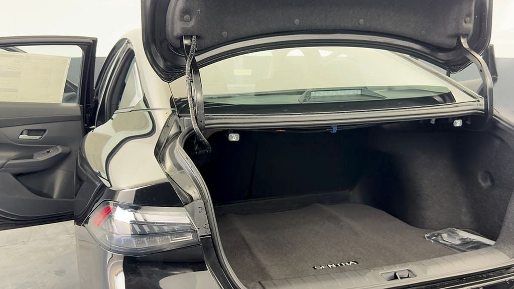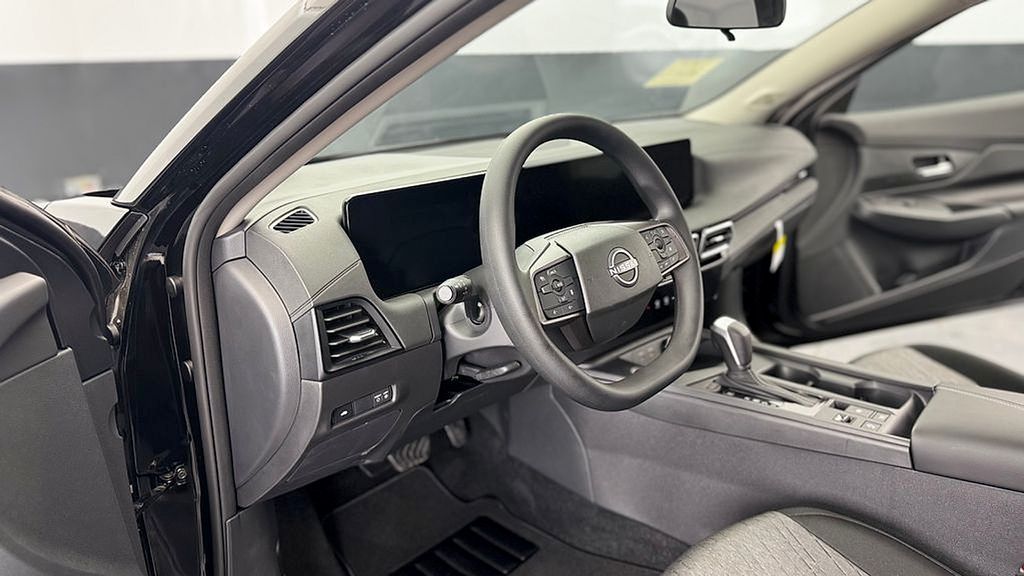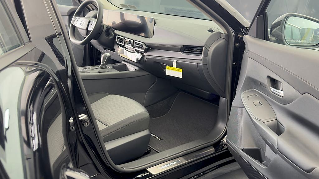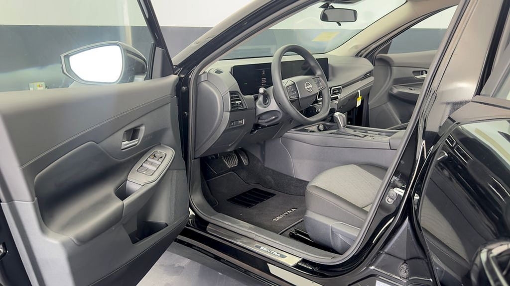 Super Black 2026 Nissan Sentra SV FWD CVT with Xtronic 2.0L I4 DOHC 16" Machined Alloy Wheels, 4 Speakers, 4-Wheel Disc Brakes, ABS brakes, Air Conditioning, Alloy wheels, AM/FM radio: Sirius, Auto High-beam Headlights, Automatic temperature control, Body Colored Splash Guards (4-Piece), Brake assist, Bumpers: body-color, Delay-off headlights, Driver door bin, Driver vanity mirror, Dual front impact airbags, Dual front side impact airbags, Electronic Stability Control, Exterior Ground Lighting with Logo, Floor Mat Package, Four wheel independent suspension, Front anti-roll bar, Front Bucket Seats, Front Center Armrest, Front reading lights, Fully automatic headlights, Illuminated entry, Illuminated Kick Plates, Interior Accent Lighting, Interior Door Scuff Protection, Knee airbag, Low tire pressure warning, Nissan USB Charging Cable Set, Occupant sensing airbag, Outside temperature display, Overhead airbag, Overhead console, Panic alarm, Passenger door bin, Passenger vanity mirror, Power door mirrors, Power steering, Power windows, Premium Cloth Seat Trim, Radio data system, Radio: AM/FM with RDS/MP3, Rear anti-roll bar, Rear side impact airbag, Rear window defroster, Remote keyless entry, Security system, Speed control, Speed-sensing steering, Split folding rear seat, Steering wheel mounted audio controls, Tachometer, Telescoping steering wheel, Tilt steering wheel, Traction control, Trip computer, Variably intermittent wipers, Wireless Apple CarPlay/Wireless Android Auto.