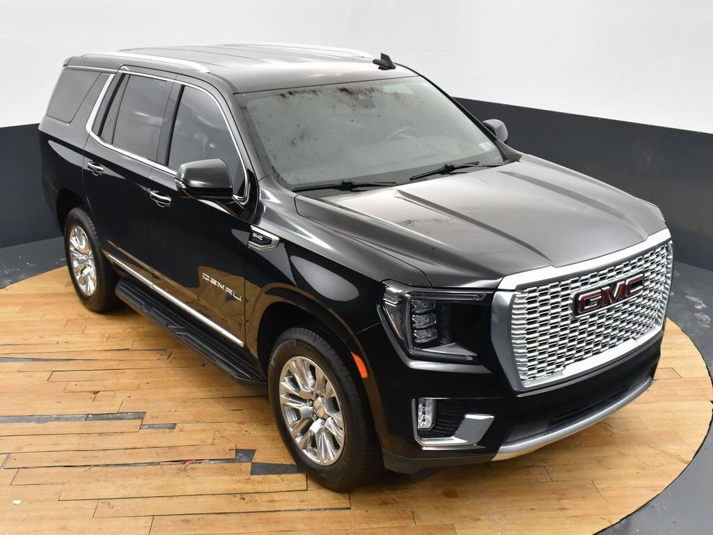 12-Way Power Seat Adjusters, 14 Speakers, 15" Diagonal Multi-Color Head-Up Display, 2 Presets For Outside Rearview Mirrors, 3.23 Rear Axle Ratio, 3rd Row 60/40 Power-Folding Split-Bench Seat, 3rd row seats: split-bench, 4-Wheel Disc Brakes, ABS brakes, Adaptive suspension, Air Conditioning, Alloy wheels, AM/FM radio: SiriusXM with 360L, Apple CarPlay/Android Auto, Auto High-beam Headlights, Auto-dimming door mirrors, Auto-dimming Rear-View mirror, Auto-leveling suspension, Automatic Emergency Braking, Automatic temperature control, Bodyside moldings, Bose 14-Speaker Surround w/CenterPoint, Brake assist, Bright Front & Rear Door Sill Plates, Bumpers: body-color, Chrome Door Handles w/Body-Color Strip, Compass, Delay-off headlights, Driver door bin, Driver vanity mirror, Dual Exhaust System, Dual front impact airbags, Dual front side impact airbags, Electronic Stability Control, Emergency communication system: OnStar and GMC connected services capable, Following Distance Indicator, Forward Collision Alert, Four wheel independent suspension, Front & Rear Park Assist, Front anti-roll bar, Front Bucket Seats, Front Center Armrest, Front dual zone A/C, Front fog lights, Front Pedestrian Braking, Front reading lights, Fully automatic headlights, Galvano Bodyside Moldings, Garage door transmitter, Hands-Free Power Programmable Rear Liftgate, HD Radio, HD Surround Vision, Heads-Up Display, Heated & Ventilated Driver & Front Passenger Seats, Heated 2nd Row Outboard Position Seats, Heated Automatic Steering Wheel, Heated door mirrors, Heated Driver & Front Passenger Seats, Heated front seats, Heated rear seats, Heated steering wheel, Hill Descent Control, Illuminated entry, Inside Rear-View Auto-Dimming Mirror, IntelliBeam Automatic High Beam On/Off, Jet Black Interior Trim, Lane Change Alert w/Side Blind Zone Alert, Lane Keep Assist w/Lane Departure Warning, Leather steering wheel, Low tire pressure warning, Magnetic Ride Control Suspension, Memory seat, Navigation System, Not Equipped w/Automatic Stop/Start, Occupant sensing airbag, Outside Heated Power-Adjustable Mirrors, Outside temperature display, Overhead airbag, Overhead console, Panic alarm, Passenger door bin, Passenger vanity mirror, Perforated Leather Seating Surfaces, Power door mirrors, Power driver seat, Power Liftgate, Power passenger seat, Power Release 2nd Row Bucket Seats, Power steering, Power Tilt & Telescopic Steering Column, Power windows, Preferred Equipment Group 5SA, Radio: AM/FM/SiriusXM w/Navigation, Rain sensing wipers, Rear air conditioning, Rear anti-roll bar, Rear Cross Traffic Alert, Rear Pedestrian Alert, Rear reading lights, Rear window defroster, Rear window wiper, Remote keyless entry, Roof rack: rails only, Safety Alert Seat, Security system, SiriusXM w/360L, Speed control, Speed-sensing steering, Split folding rear seat, Spoiler, Steering wheel memory, Steering wheel mounted audio controls, Tachometer, Telescoping steering wheel, Tilt steering wheel, Traction control, Trip computer, Turn signal indicator mirrors, Universal Home Remote, Variably intermittent wipers, Ventilated front seats, Voltmeter, Wheels: 20" x 9" 6-Spoke Polished Aluminum.